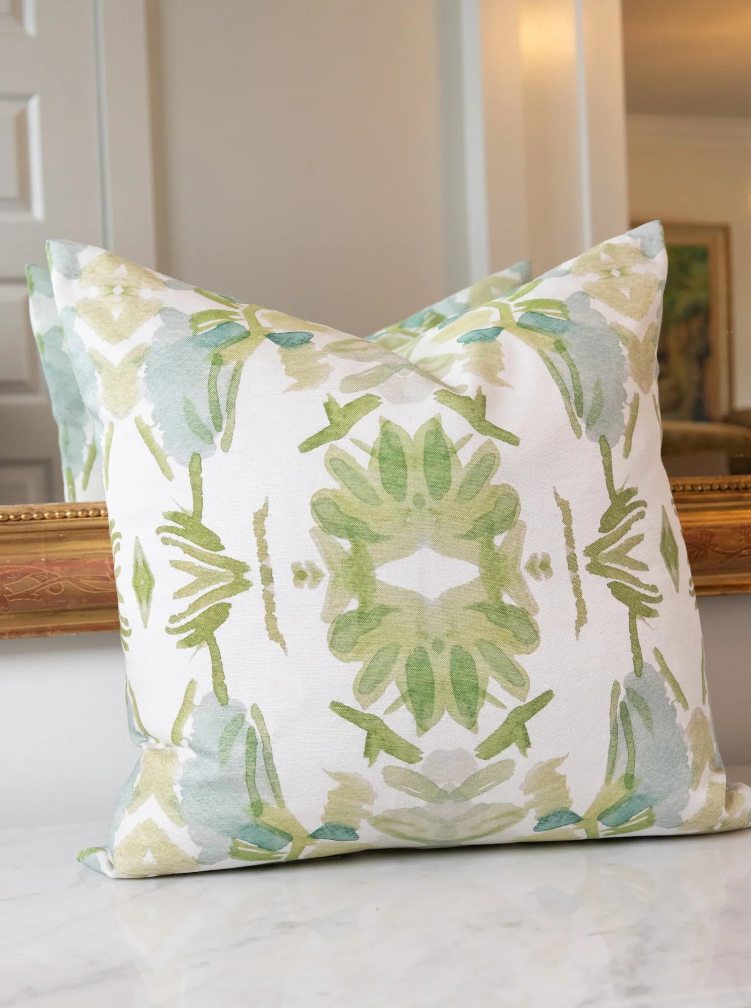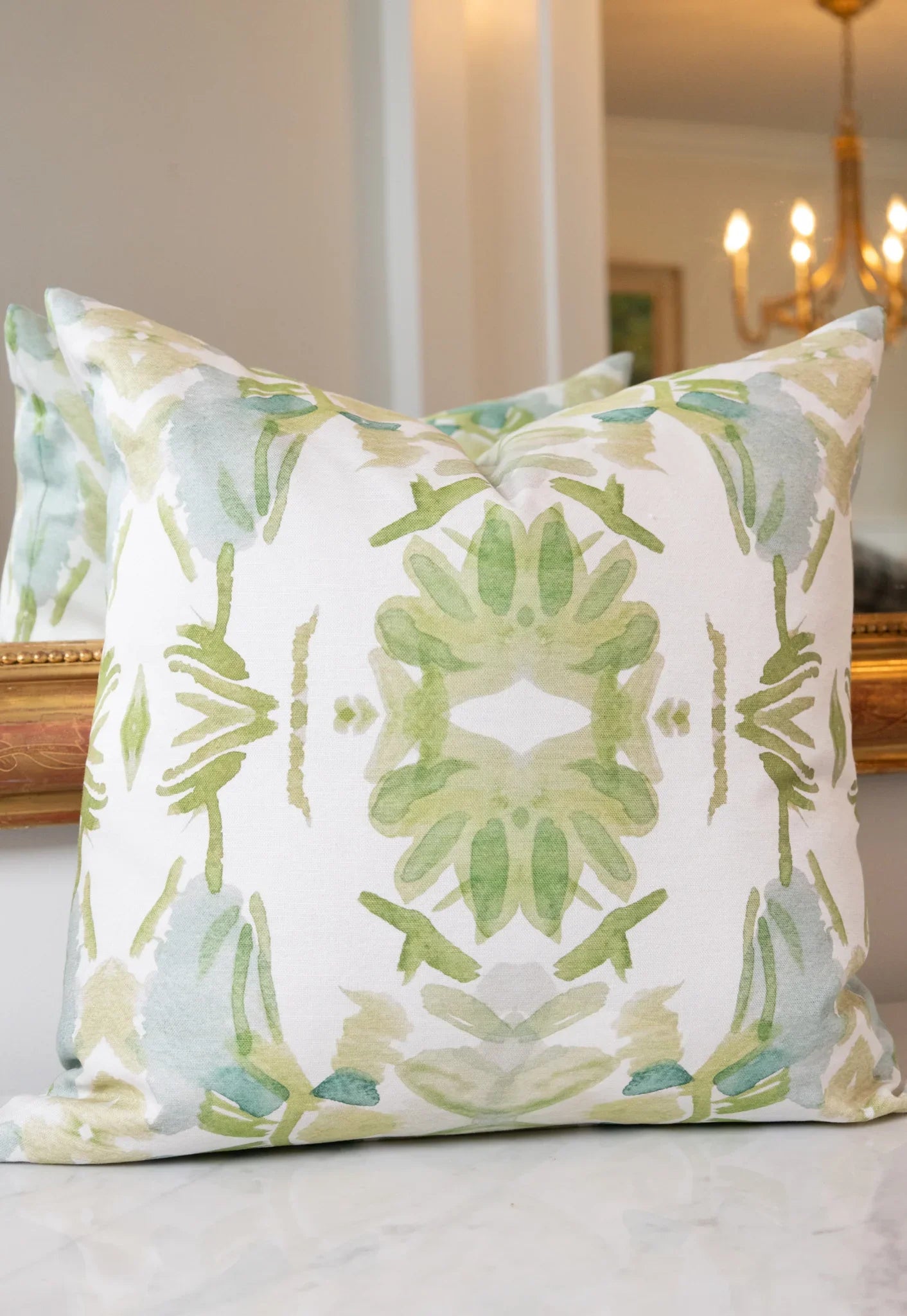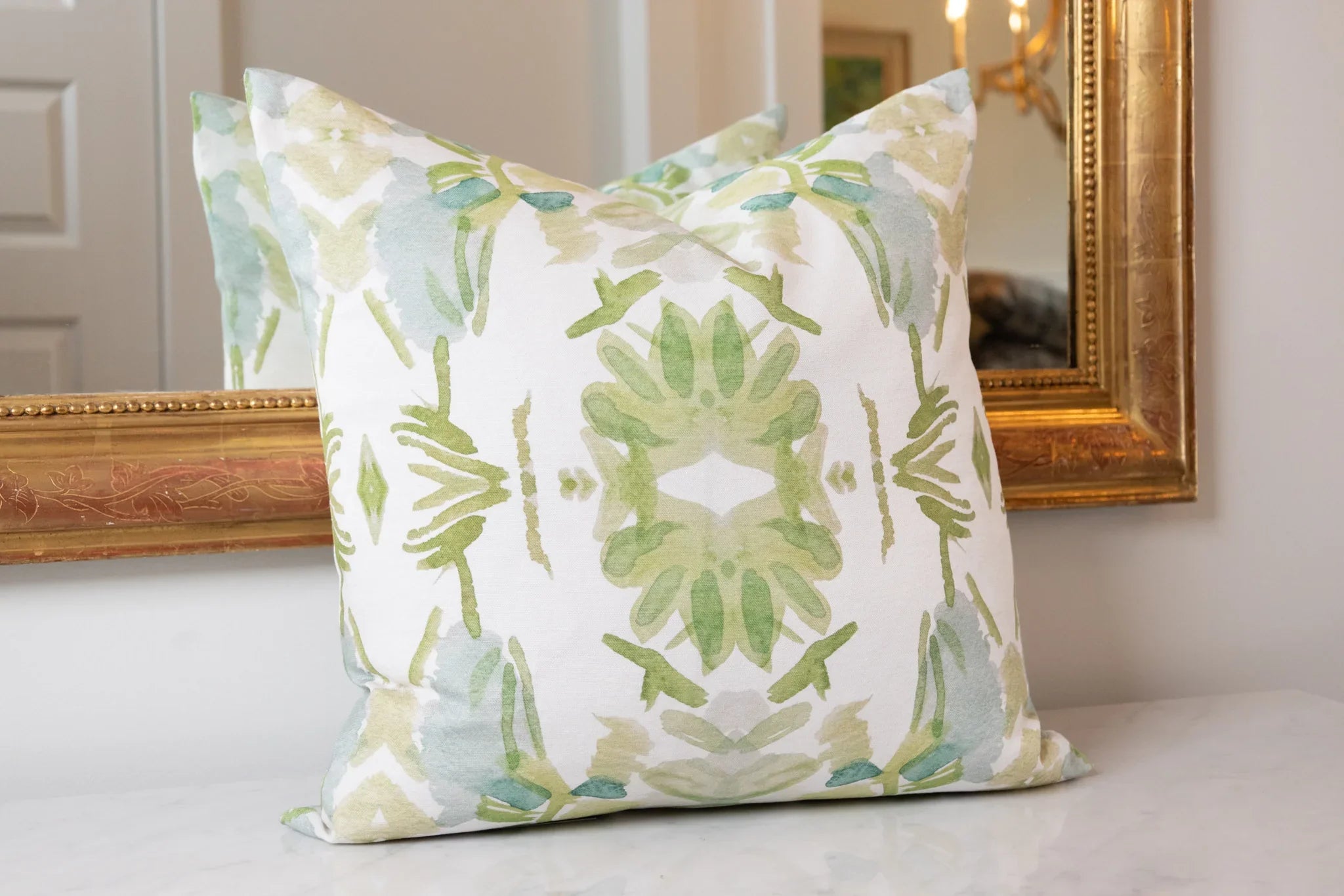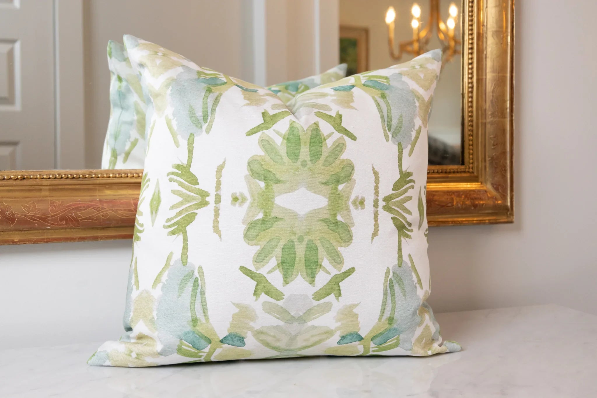 Wildflowers I White & Apple Green Luxury Pillow Large Repeat