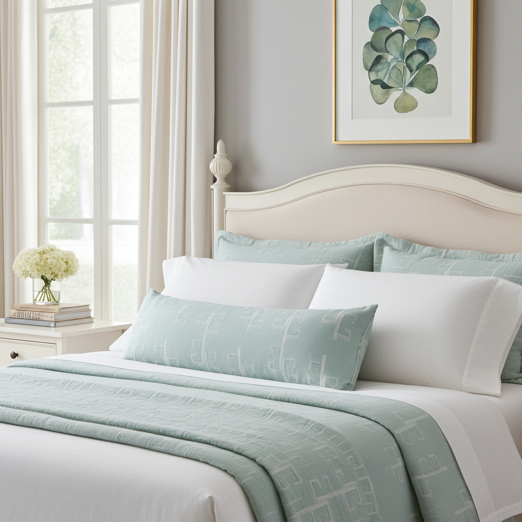 Greek Key Drop Spa Luxury Bolster Pillow Large Repeat