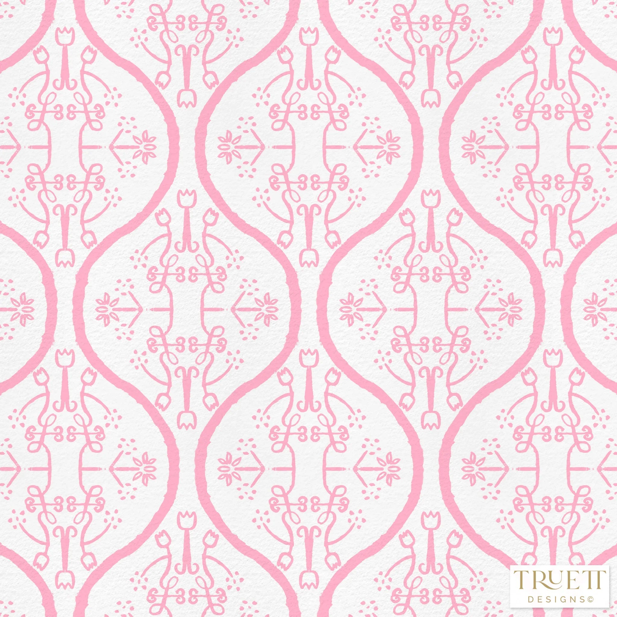 Watercolor Damask White & Pink Luxury Wallpaper Small Repeat