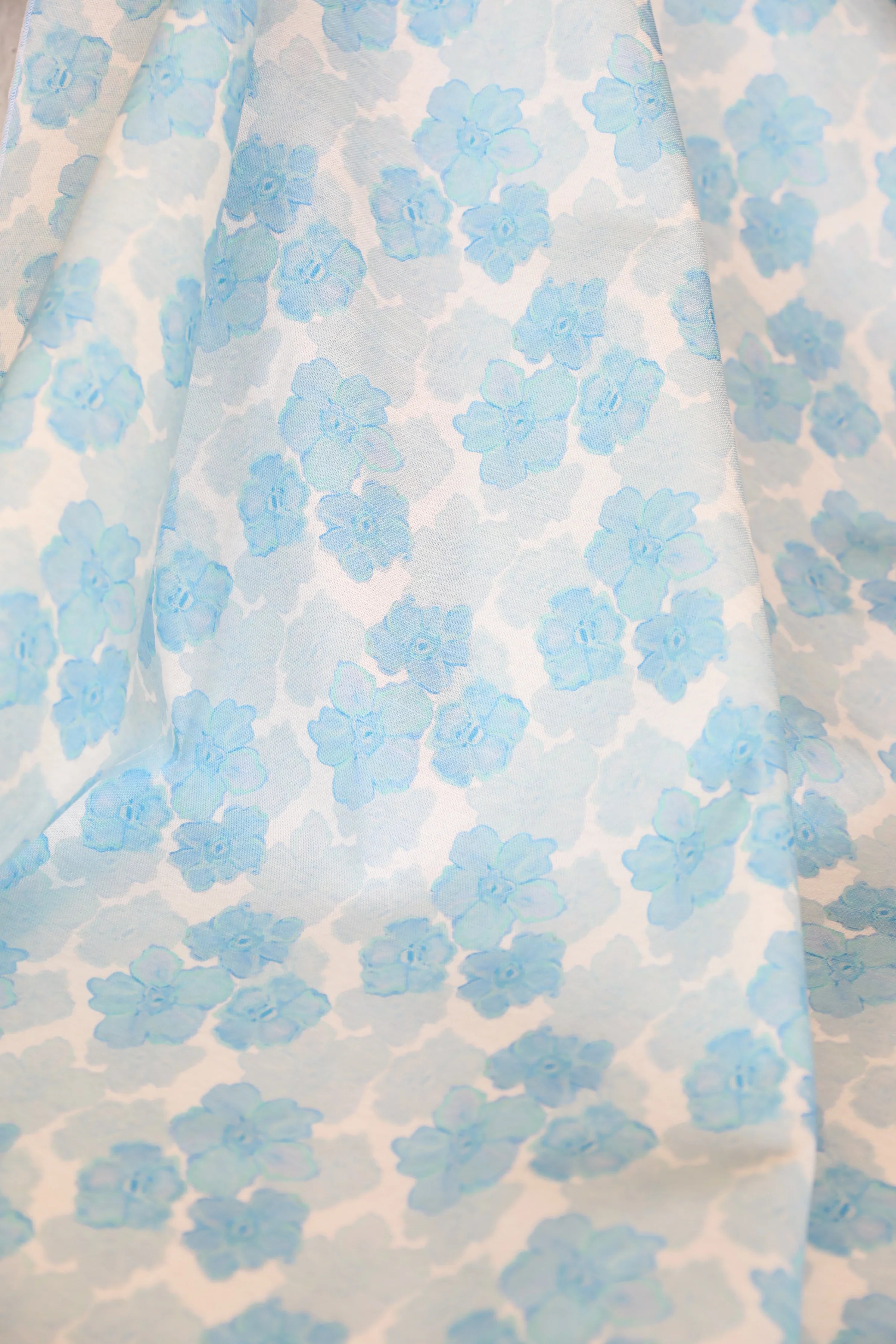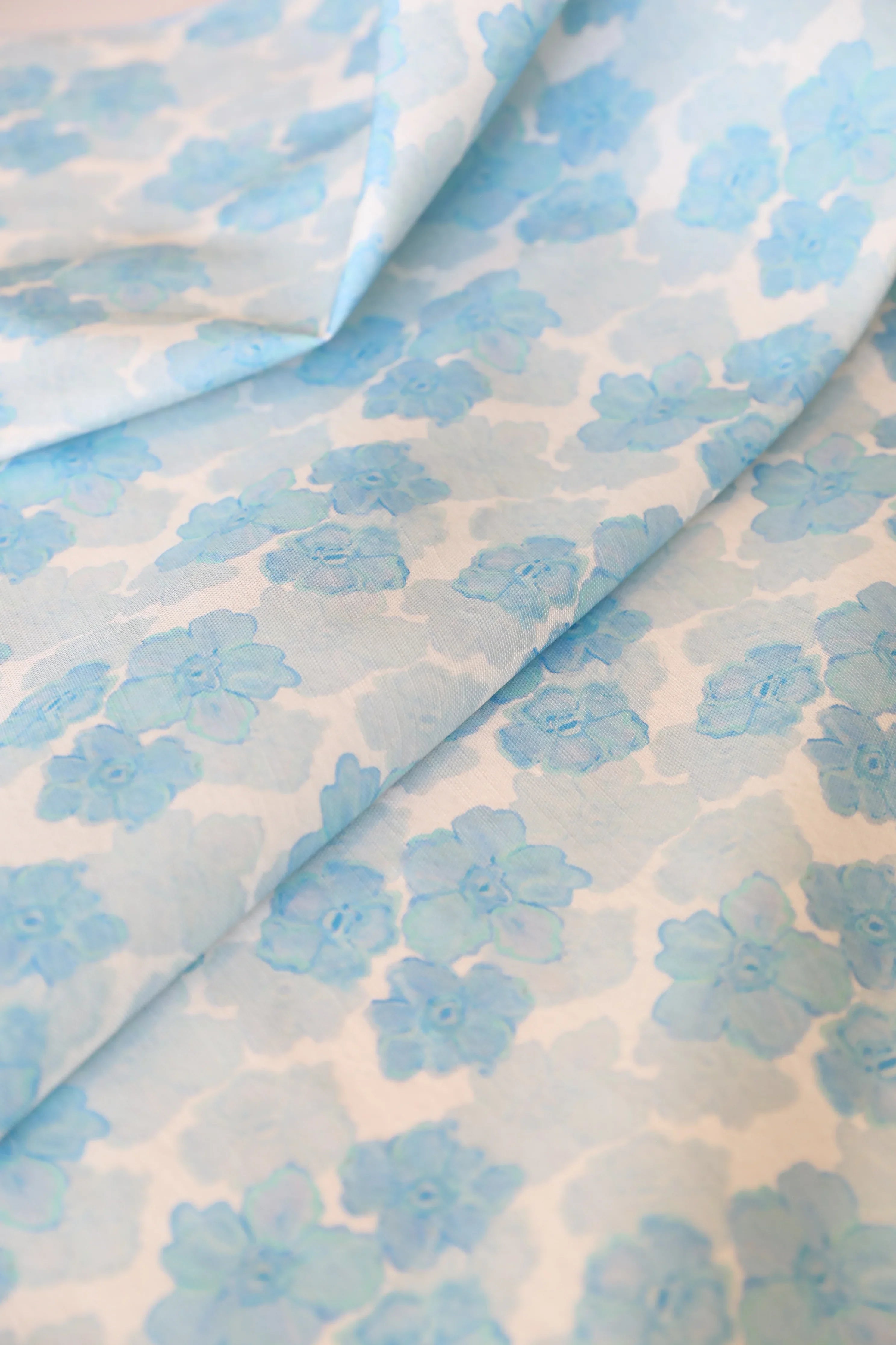 Trois Fleurs Bleue, Blue Floral Luxury Fabric