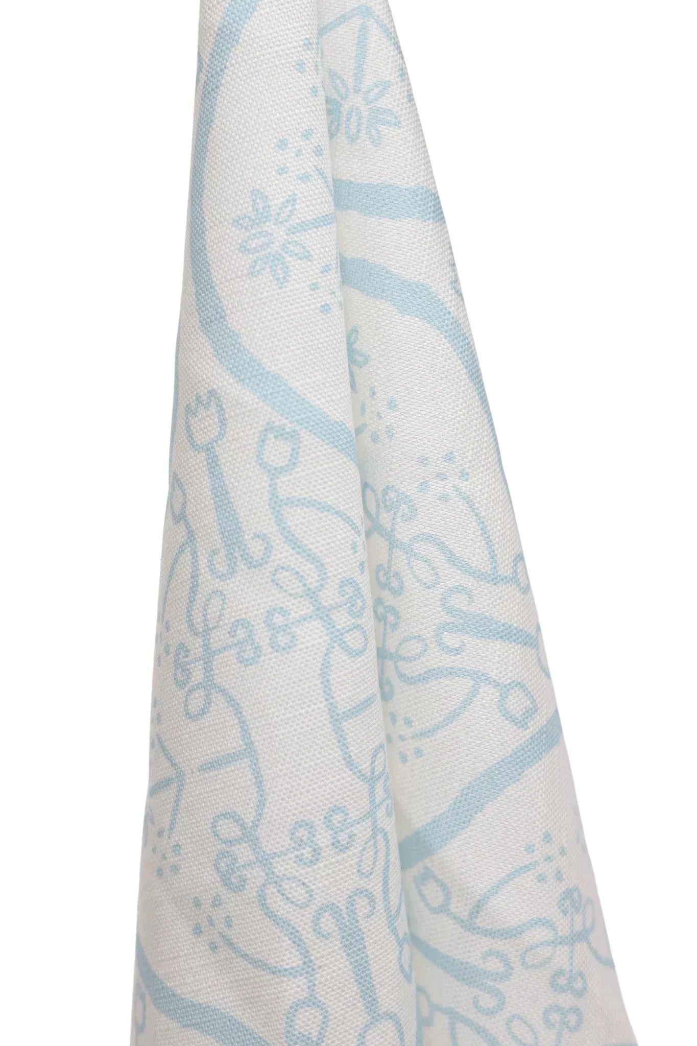 Watercolor Damask White Sky Blue Luxury Fabric by the Yard